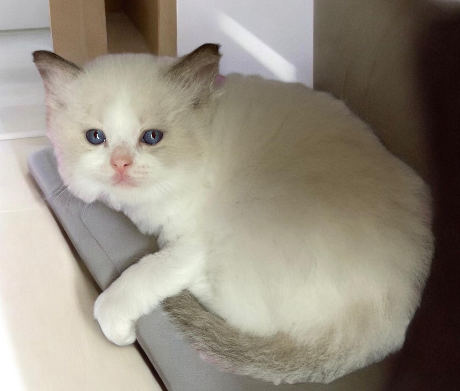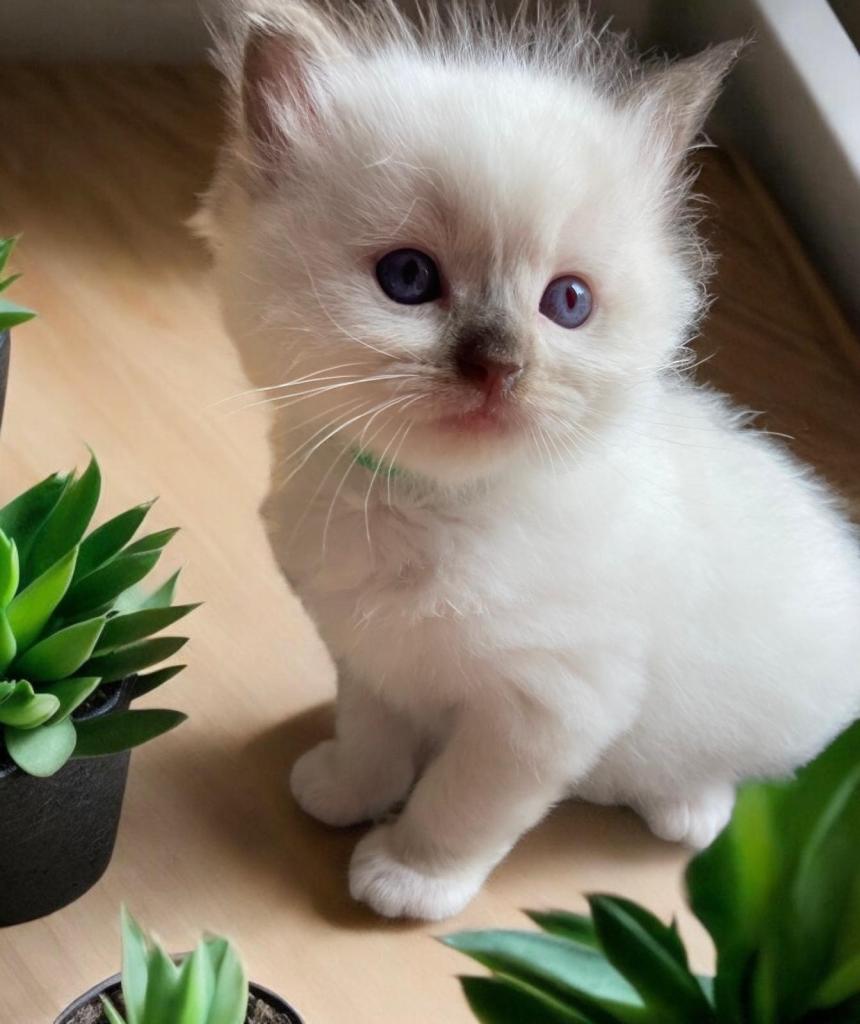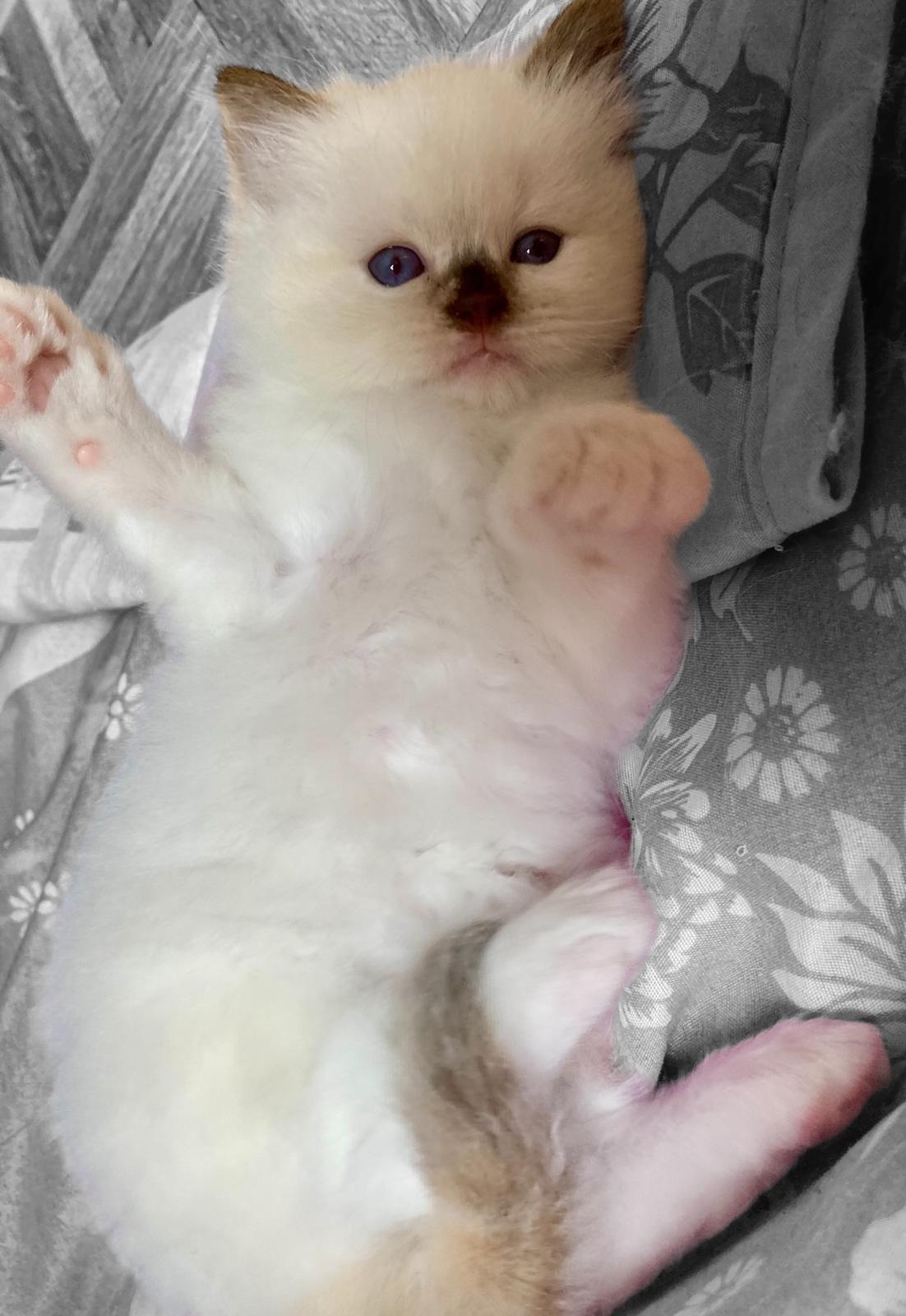 Nos petits loulou sont nés le 7 juin 2024. A la naissance, les Ragdolls sont blancs, il est donc possible de se renseigner au sujet du chaton mais il est encore trop tôt pour définir exactement sa couleur.