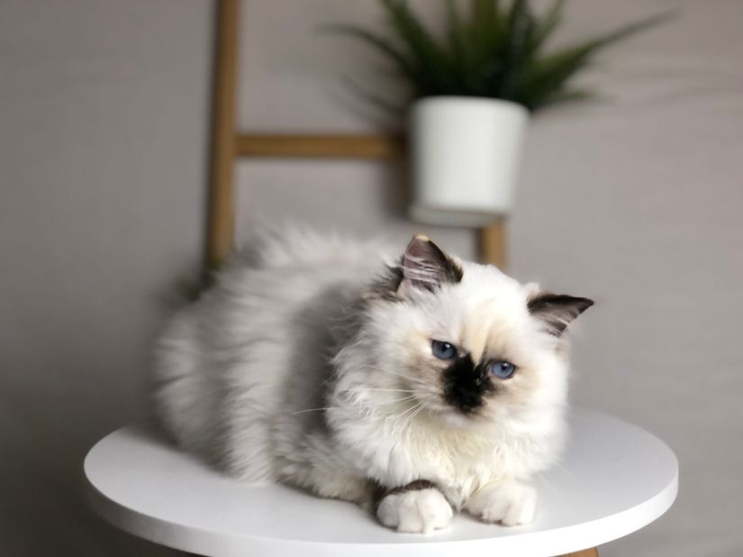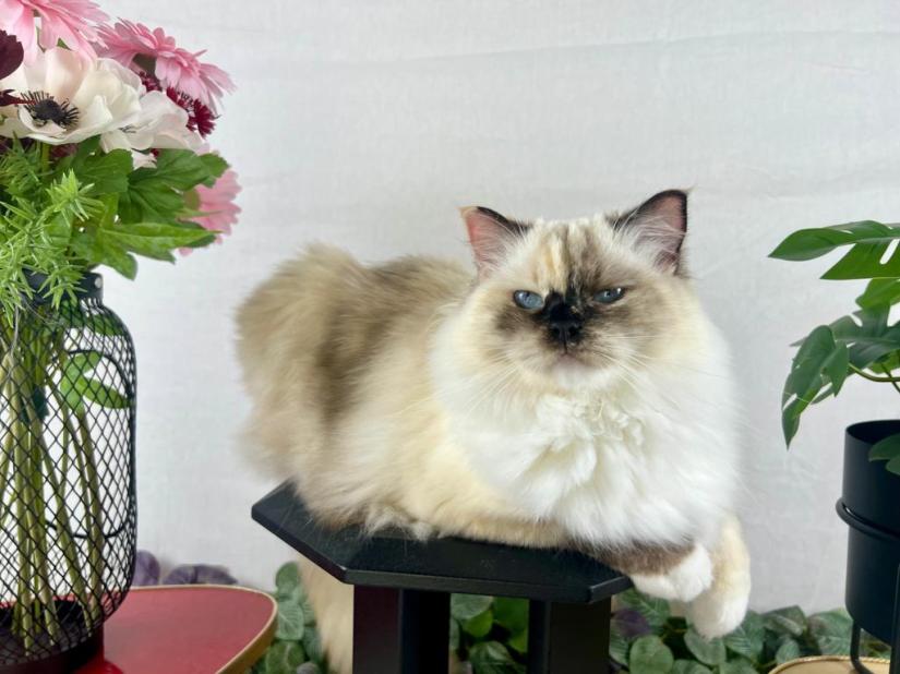 Tiqva est née le 03/07/2022. Elle vient de l’élevage de Ragdolline cat’s. Elle est de couleur seal (non diluée) tortie (qui signifie écaille de tortue) et avec un marquage/motif point mitted.